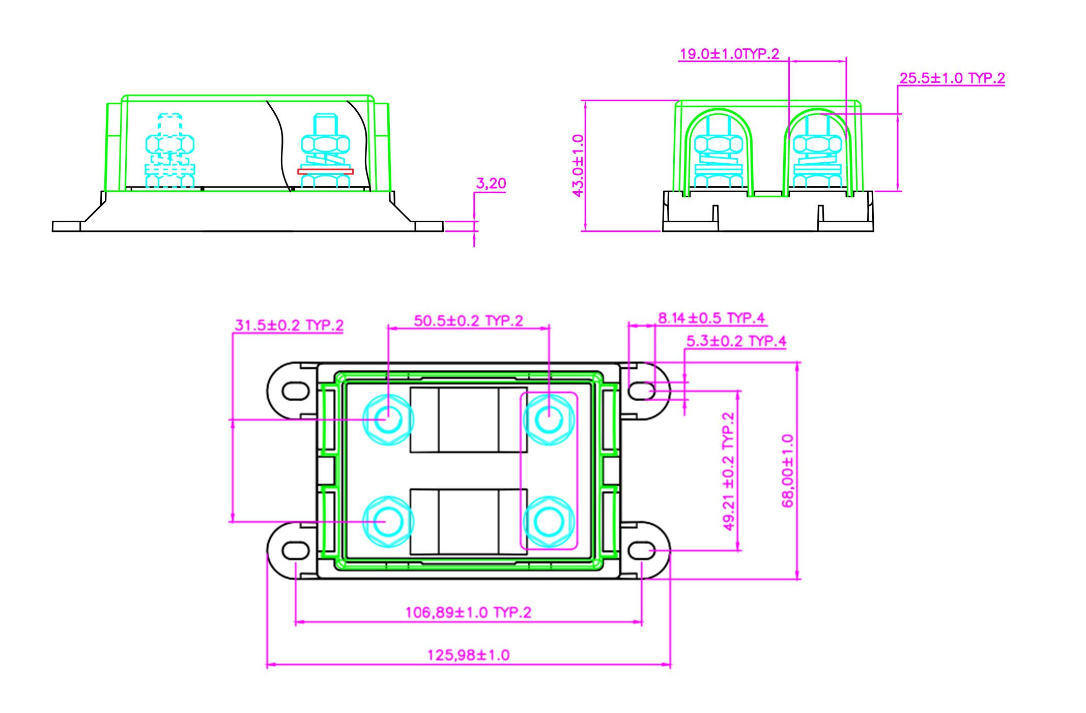 二路中號叉栓保險絲座ANM-B02